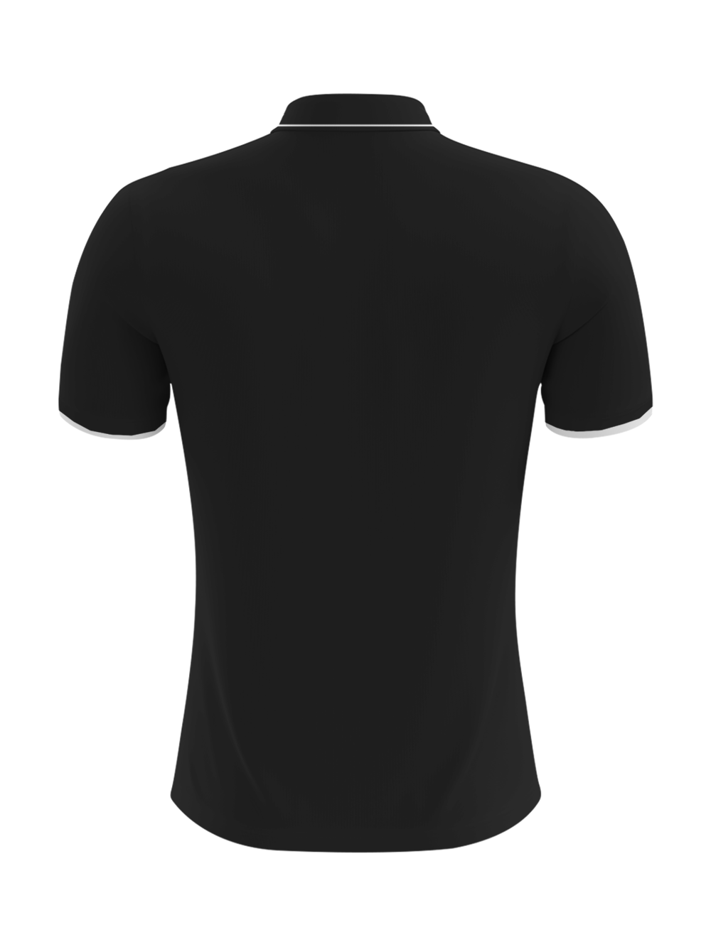 Black Cotton Polo shirt with White logos and sleeve cuffs.