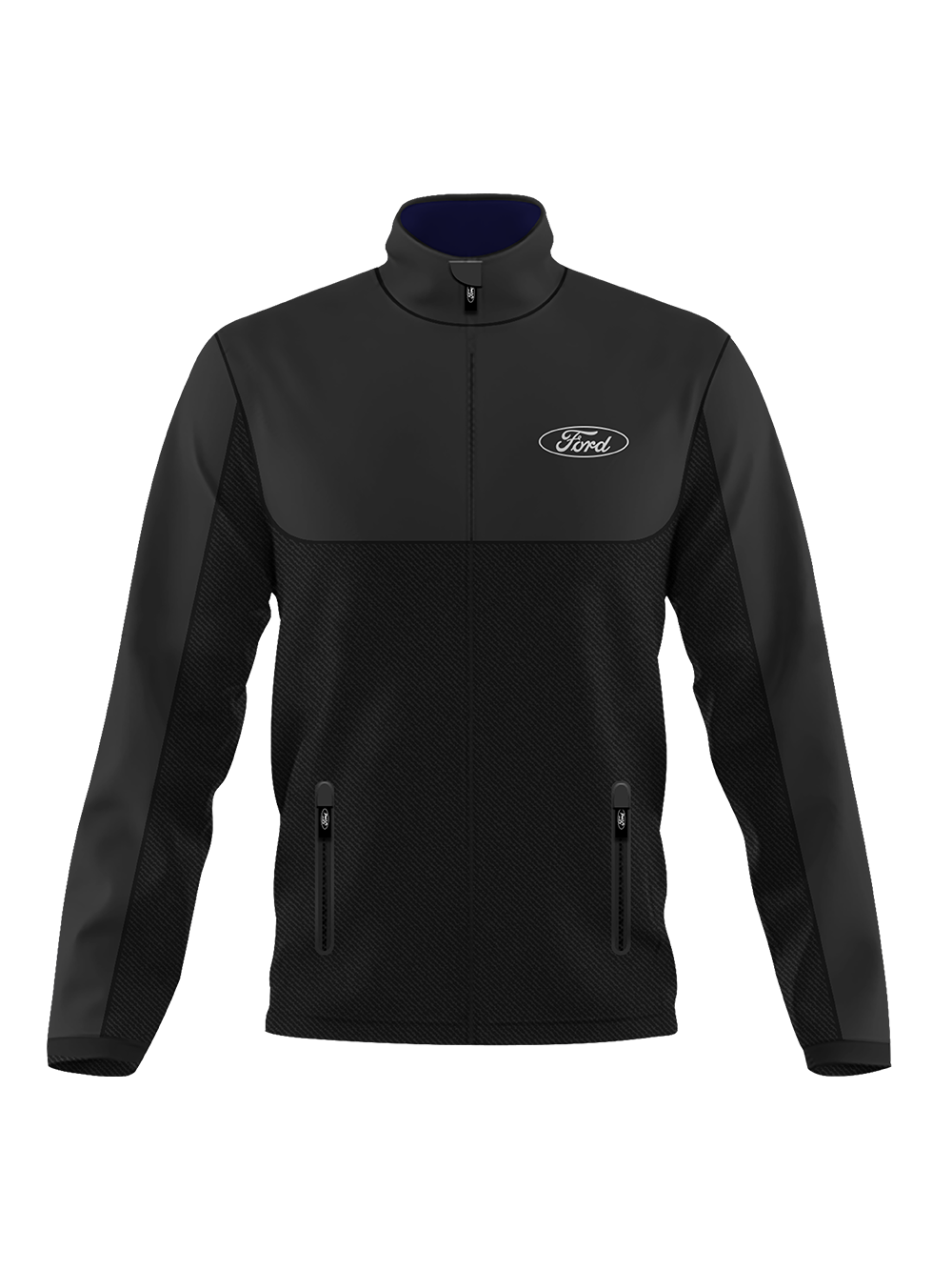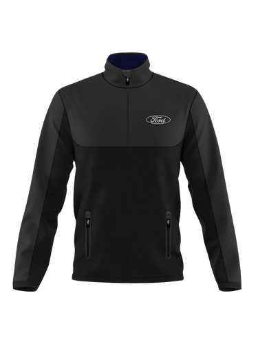 - Black Softshell Jacket with Grey panelling on the top and sleeves.